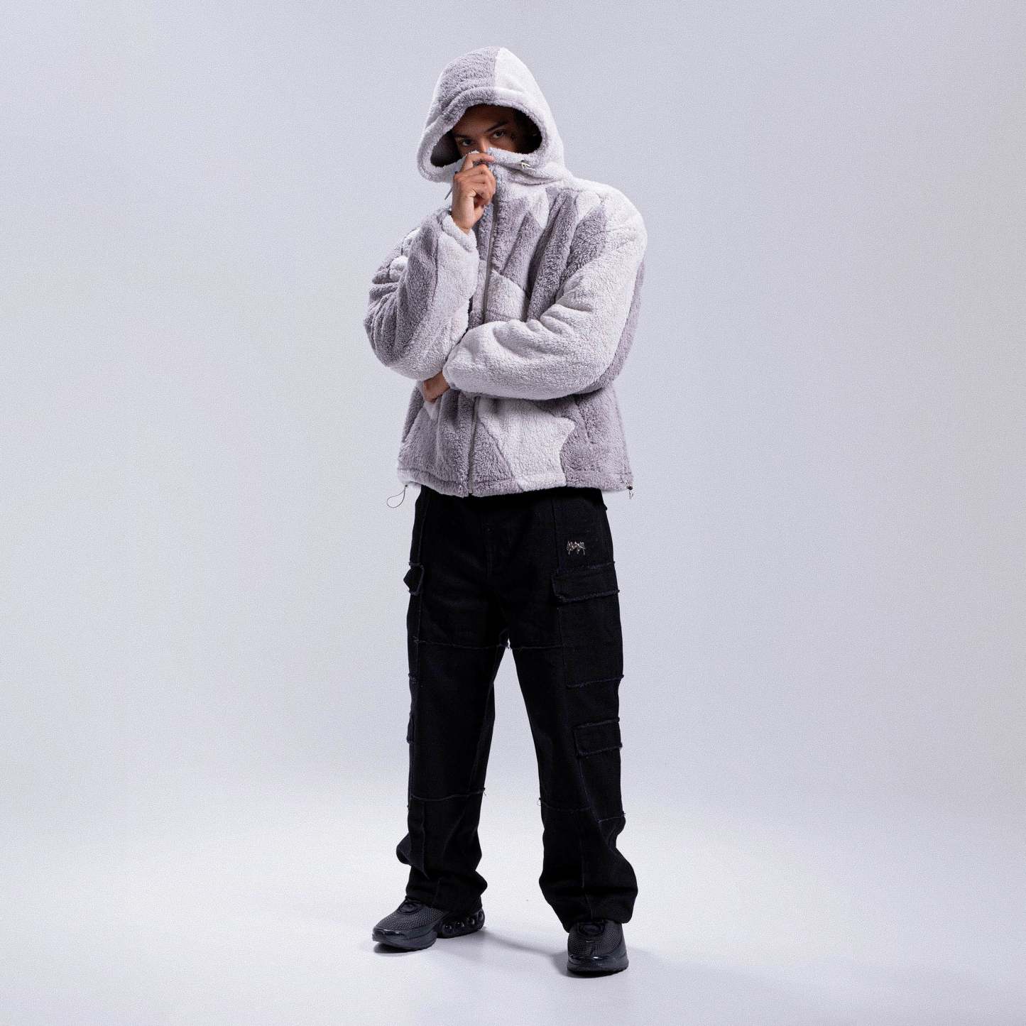 The Fluffy Sherpa Jacket is made out of 100% polyester.