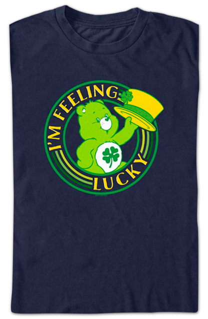 This Care Bears t-shirt features an image of Good Luck Bear showing off his leprechaun hat for St. Patrick's Day. The shirt reads I'm Feeling Lucky.