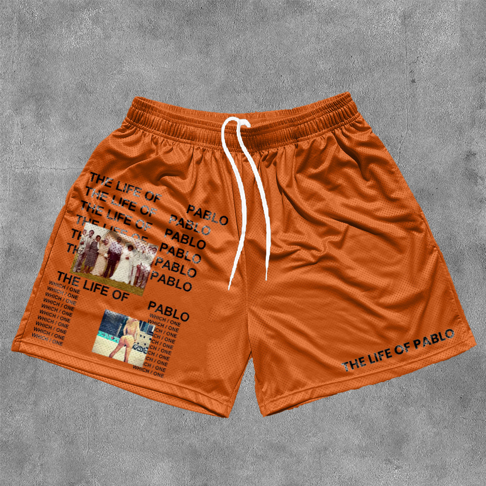 Kanye West The Life of Pablo Print Mesh Drawstring Shorts