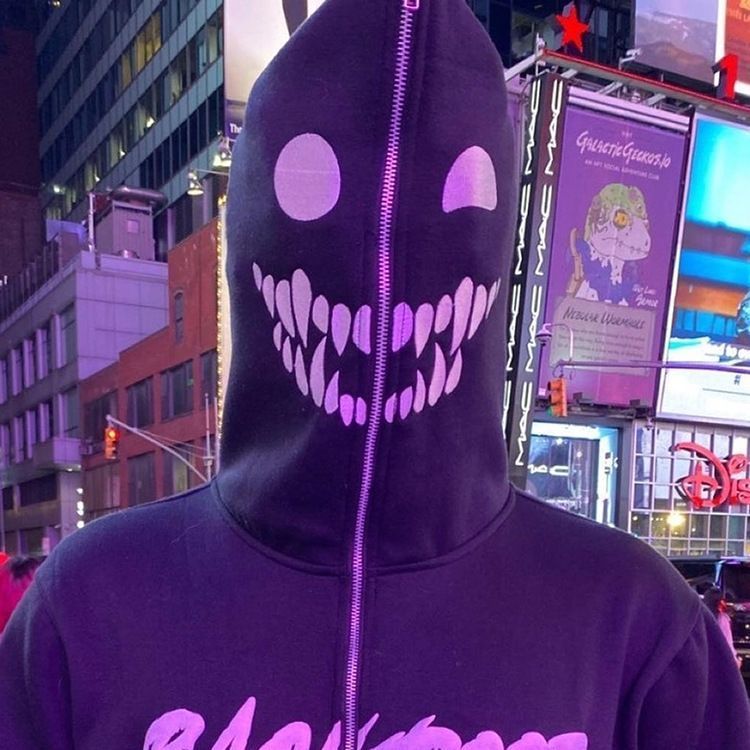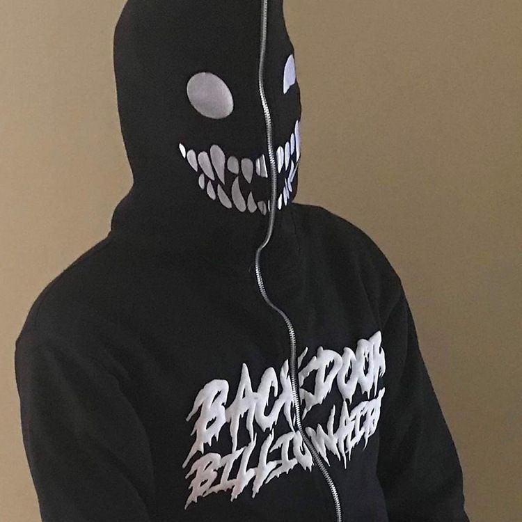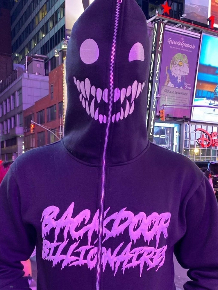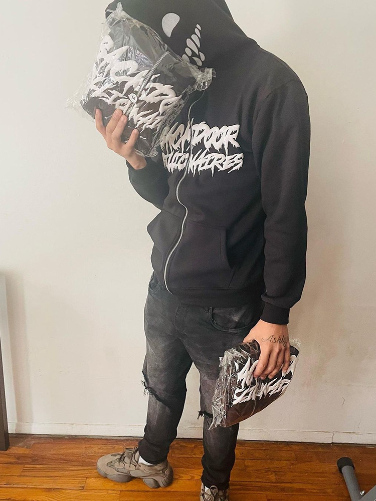 Letter Foam Y2k Hip Hop Goth Harajuku Street Loose Full Zip Up Hoodie