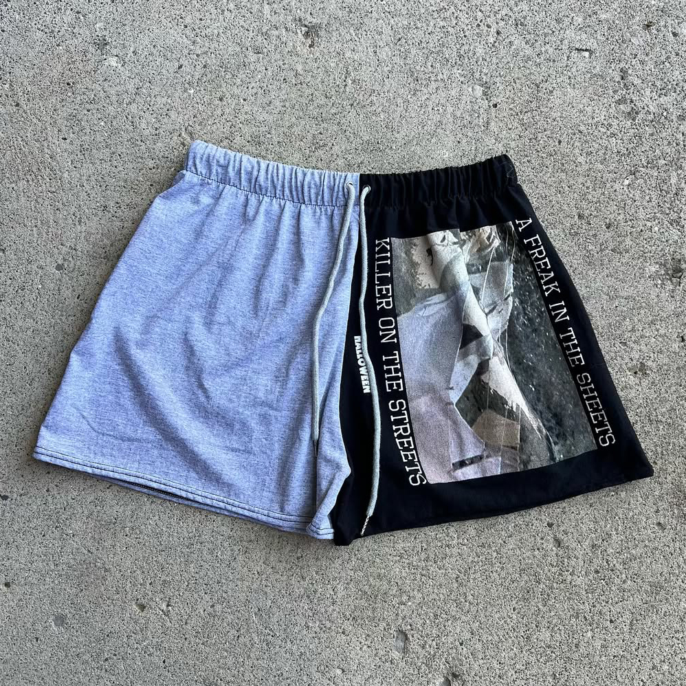 Letters Contrast Color Print Pocket Drawstring Shorts