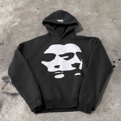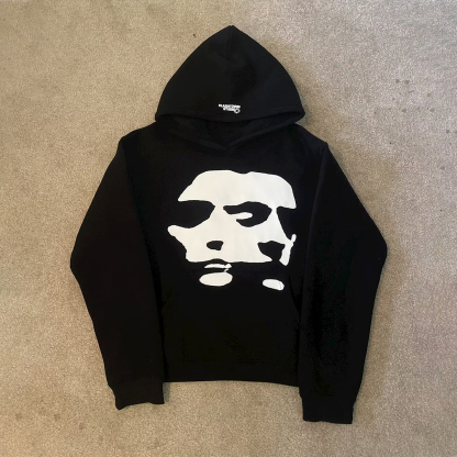 Scary Face Vintage Print Graphic Hoodie