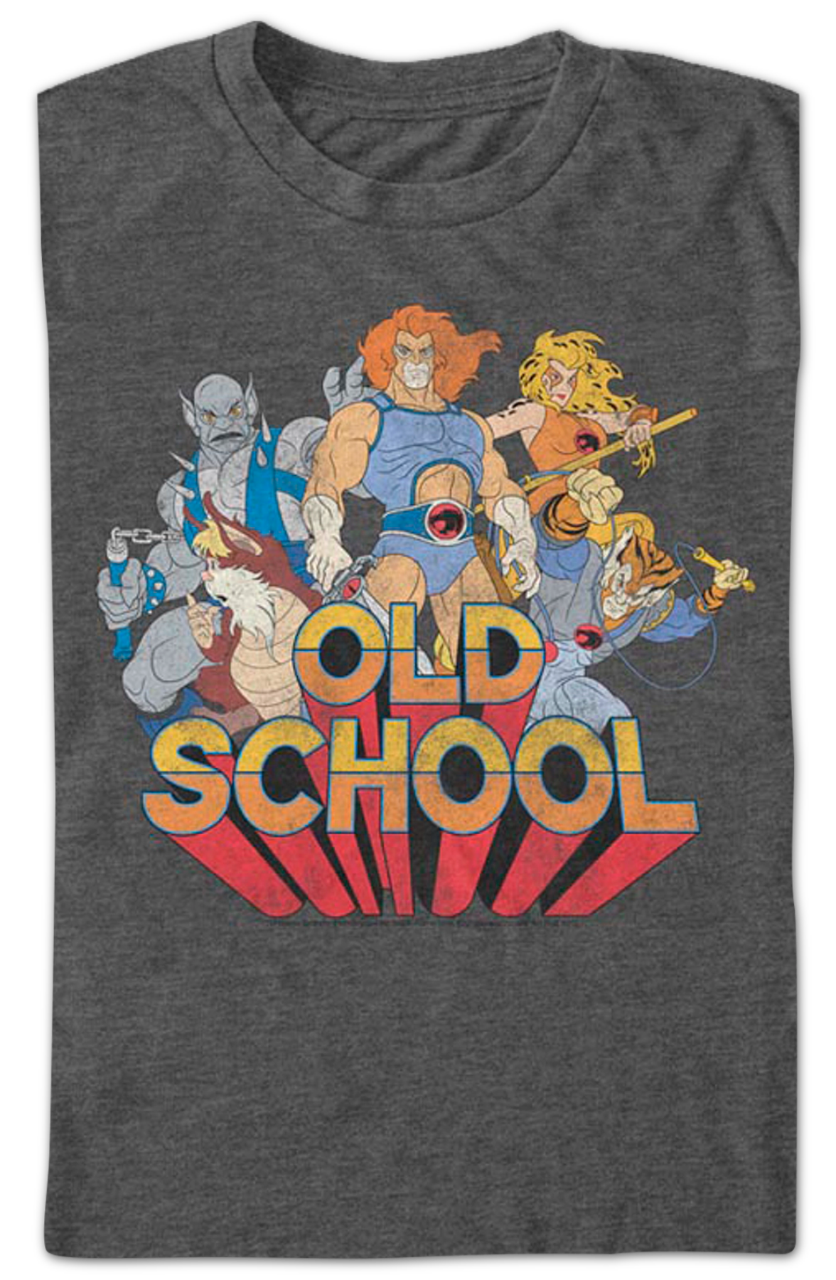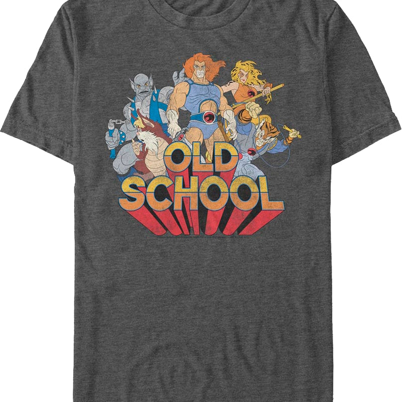 This ThunderCats t-shirt features a vintage image of the heroic characters Lion-O, Snarf, Panthro, Cheetara, and Tygra. The shirt reads Old School.