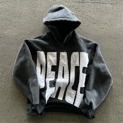 Peace Print Long Sleeve Applique Embroidered Hoodies