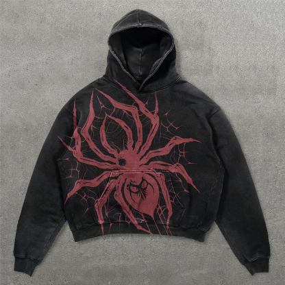 Personalized Loose Spider Print Long Sleeve Hoodies