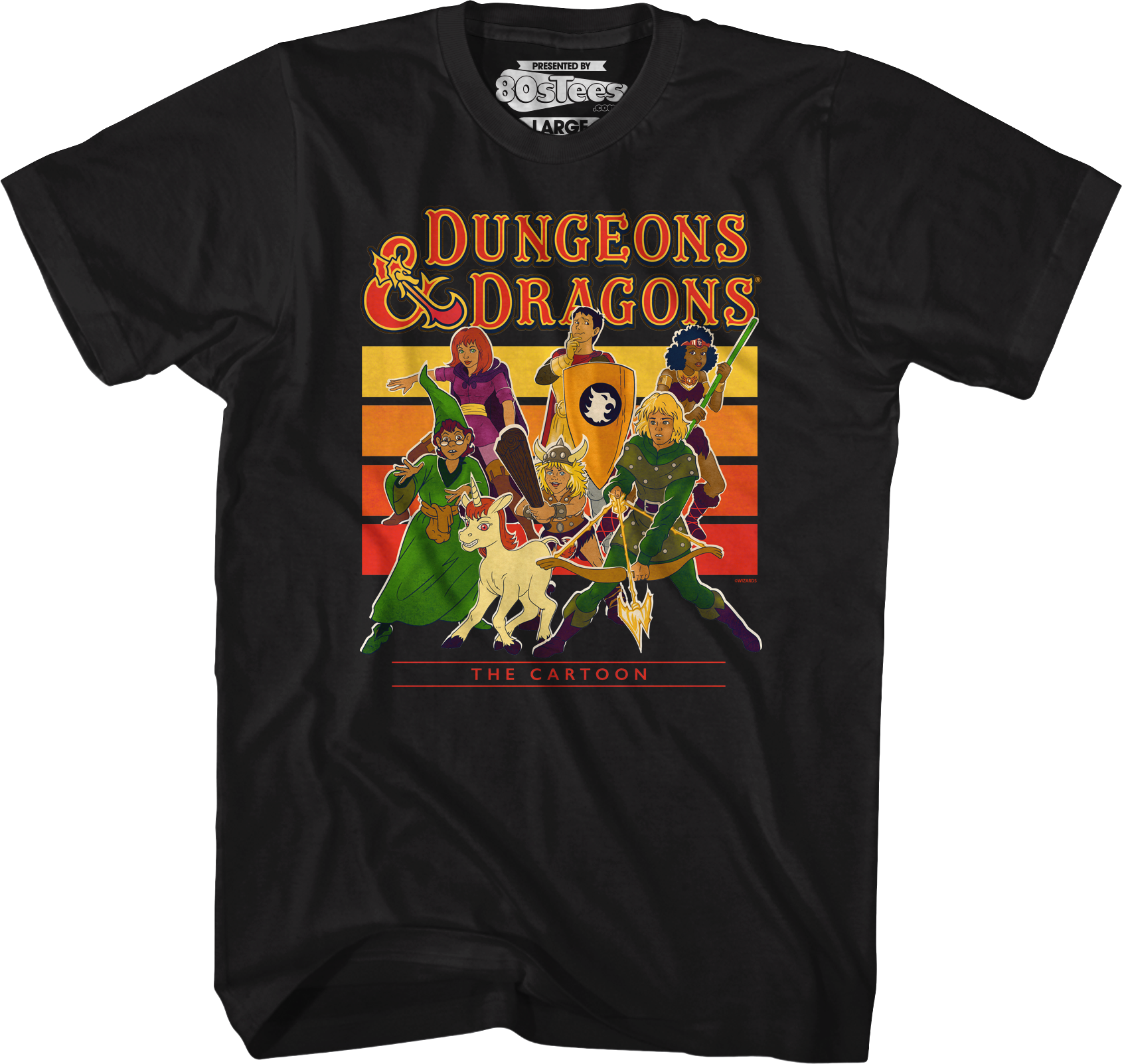 For any fan of the animated series based on the classic role-playing game, this 80sTees.com exclusive Retro Cartoon Stripes Dungeons & Dragons T-Shirt is a must have!