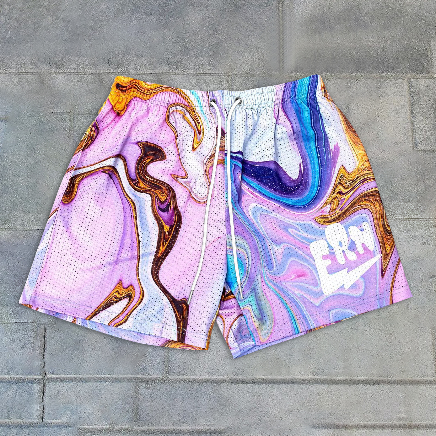 Retro Hip Hop Tie Dye Printed Athletic Shorts