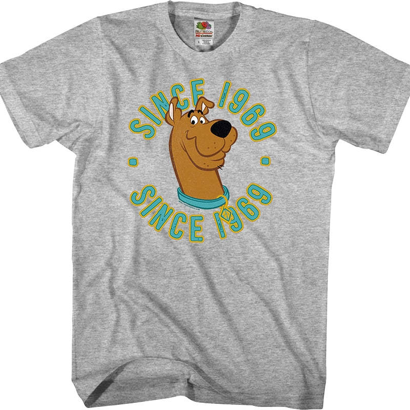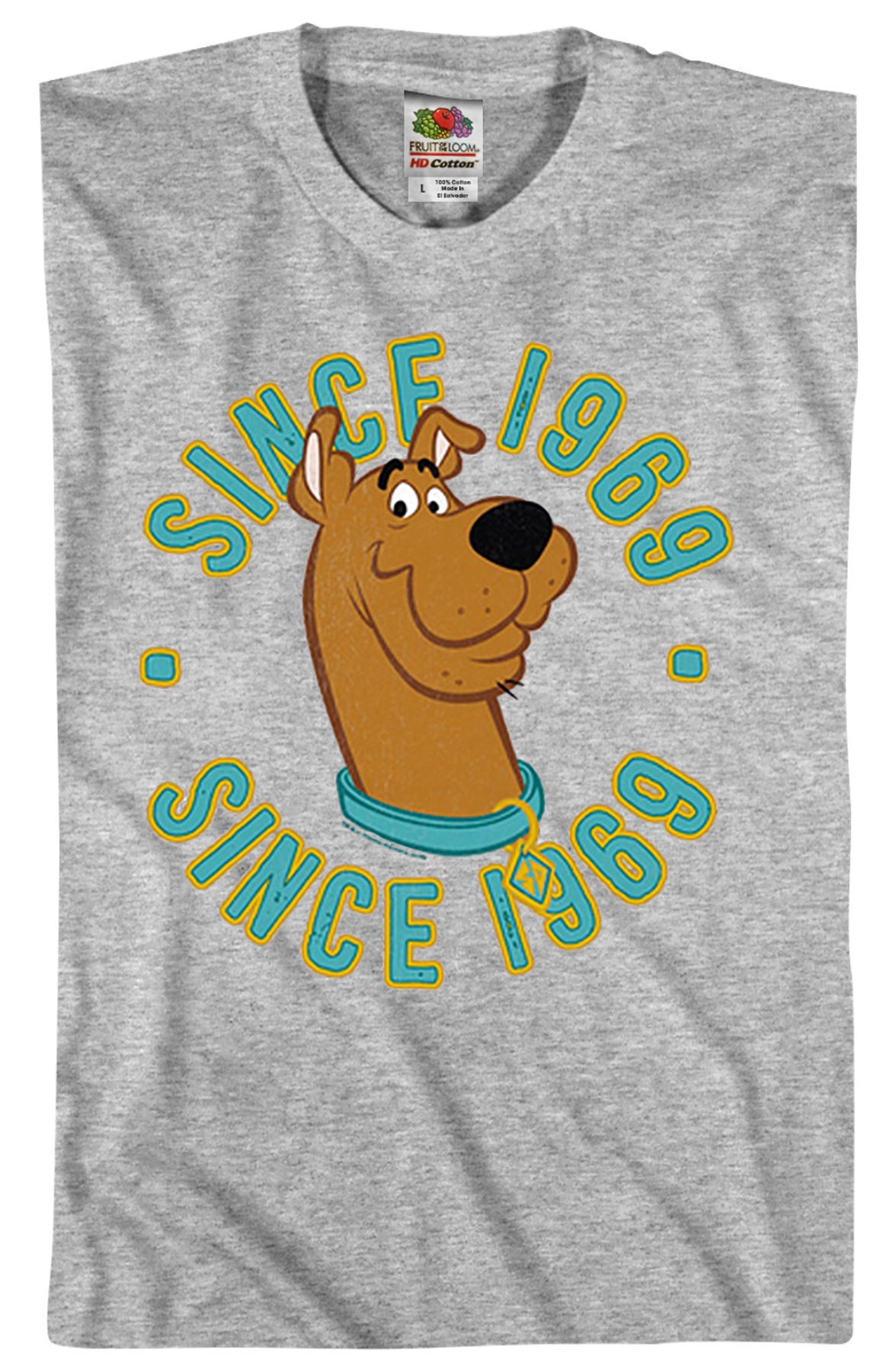 This Scooby-Doo t-shirt features an image of the lovable Great Dane, surrounded by the words "Since 1969".