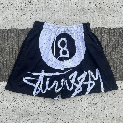 Stylish Billiards Letters Print Mesh Shorts