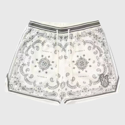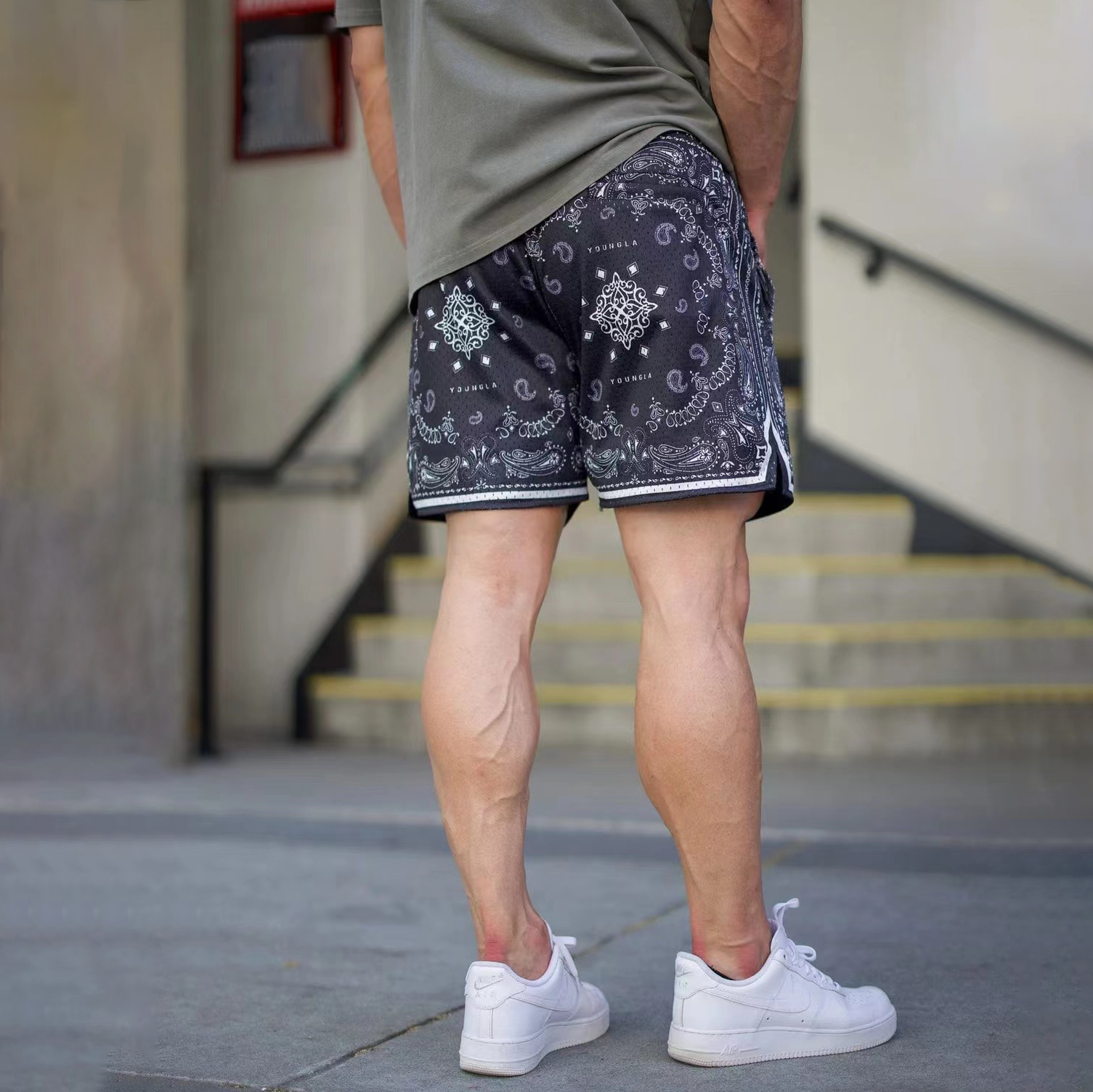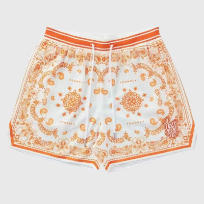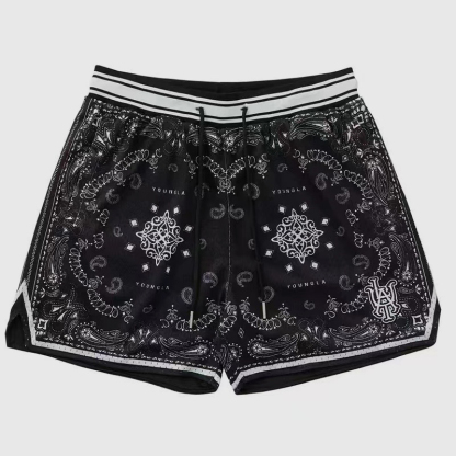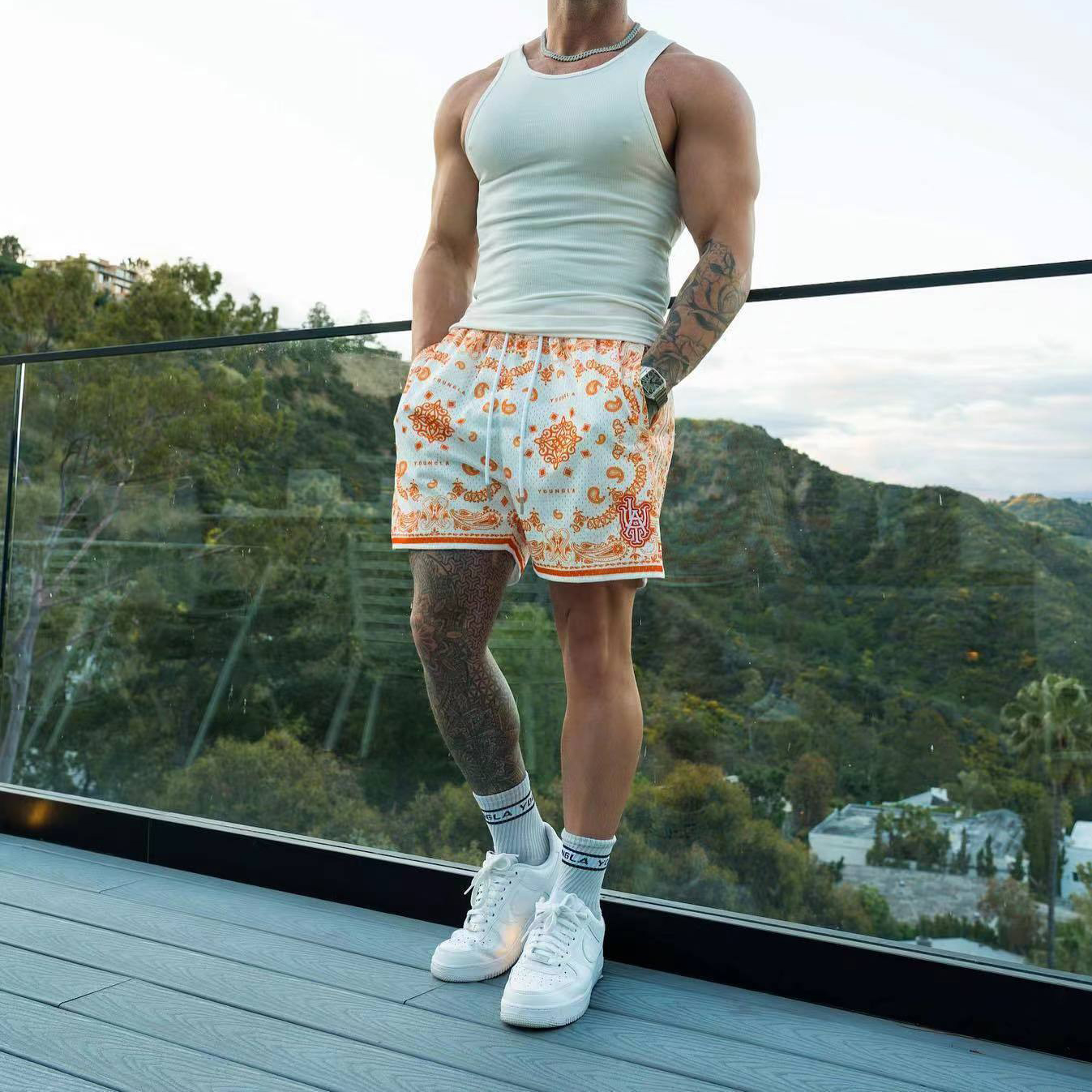 Trendy Cashew Flower Loose Mesh Casual Sports Shorts