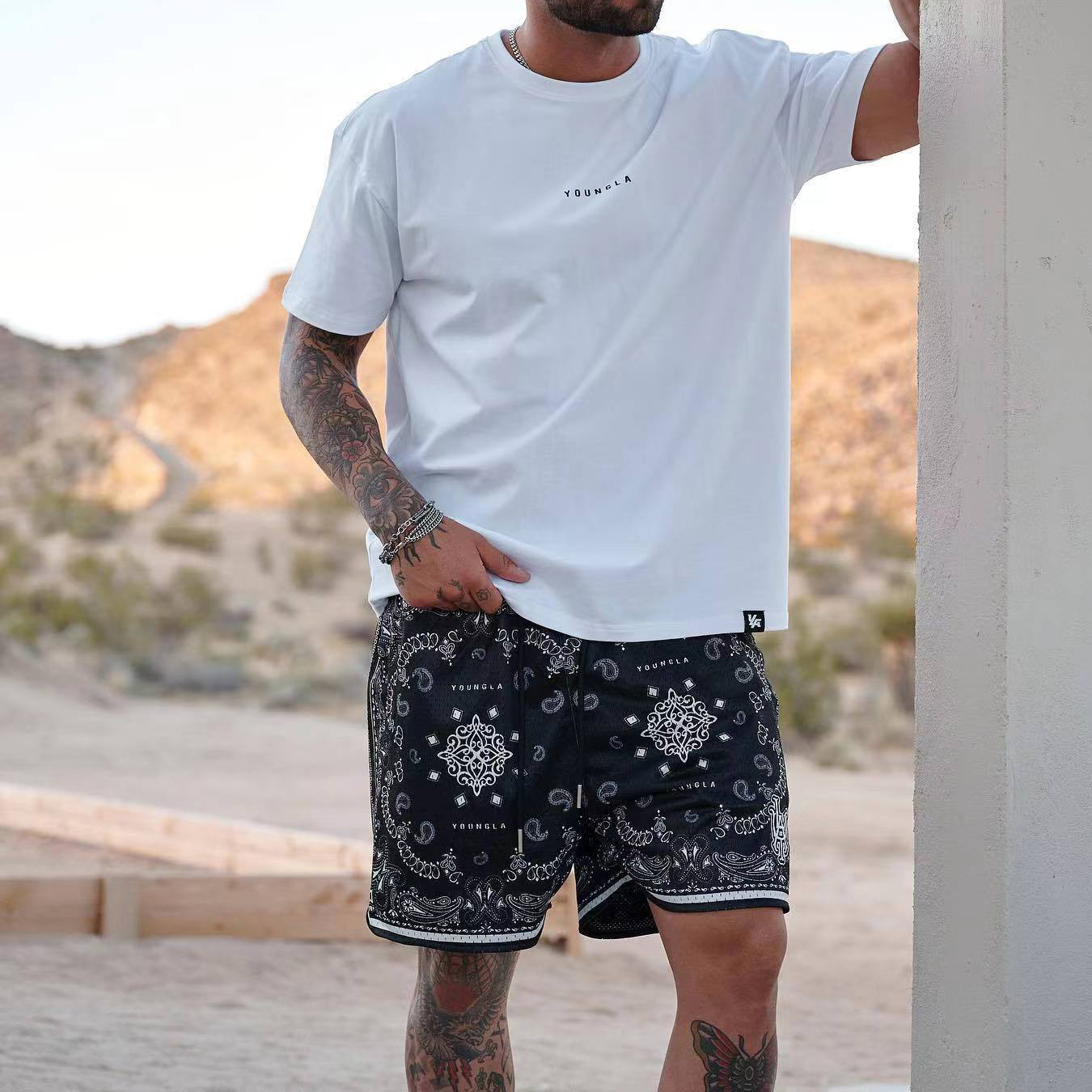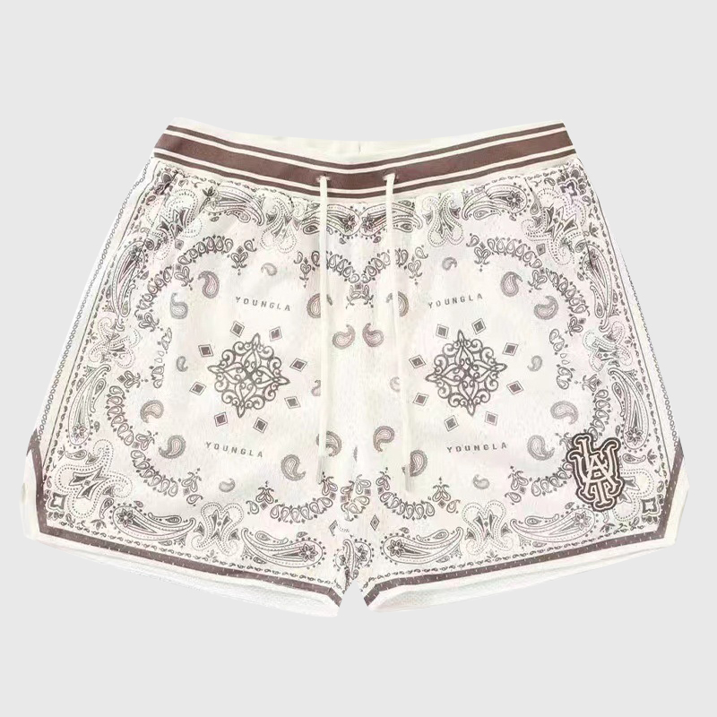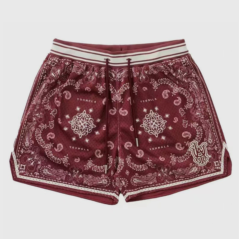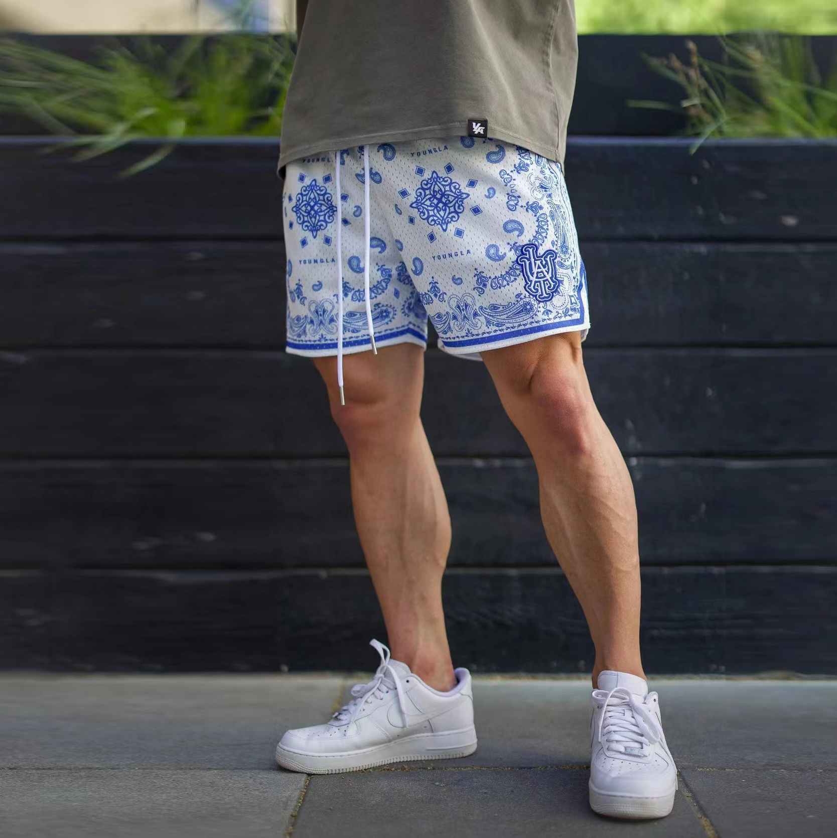 Trendy Cashew Flower Loose Mesh Casual Sports Shorts