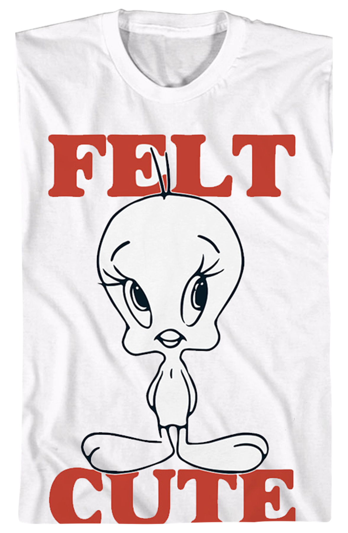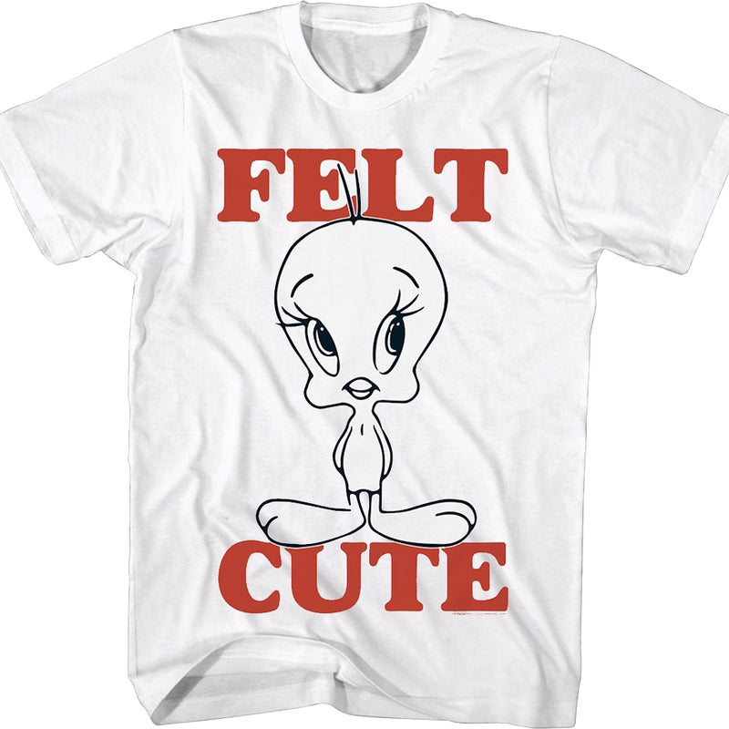 This Looney Tunes t-shirt features a sketch of the canary Tweety. The shirt reads Felt Cute.