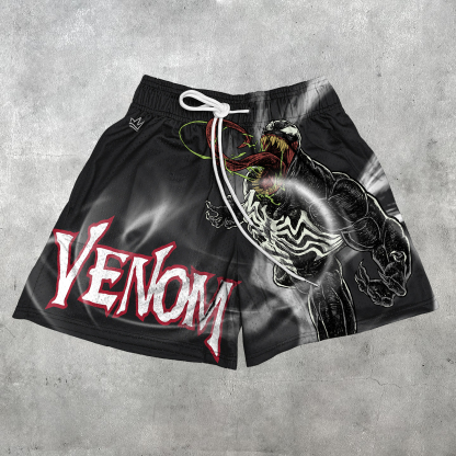Venom print casual mesh shorts