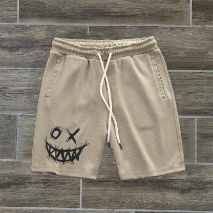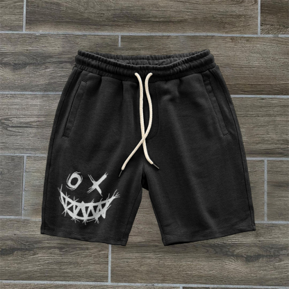 Vintage Evil Smiley Pattern Casual Shorts