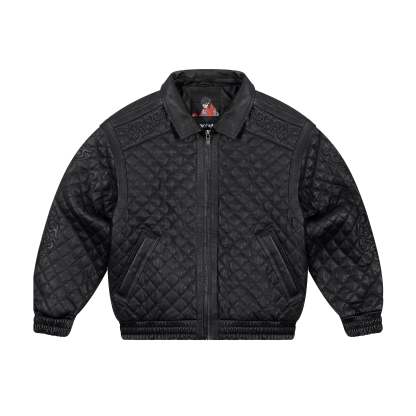 heavy real cow leather / 100% Polyester Inner linning / YKK zipper / embossed back design / quilted sleeves