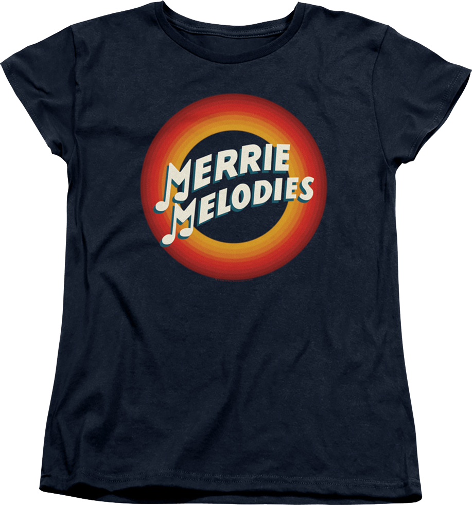 This womens Looney Tunes shirt features the logo for the Merrie Melodies animated shorts.