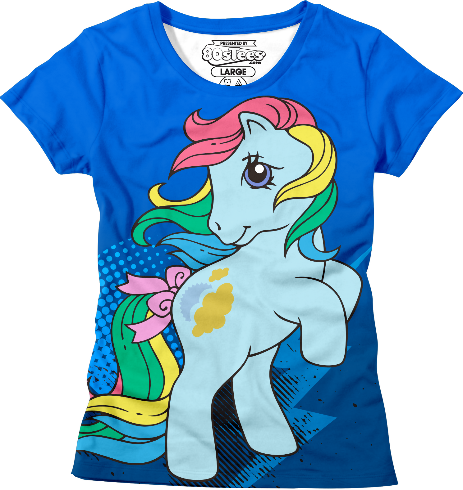 Sunlight is instantly recognizable with her silver sun poking out from behind gold clouds cutie mark. Everyone will instantly know that you are a fan when you wear this 80sTees.com exclusive Womens Sunlight My Little Pony Shirt!