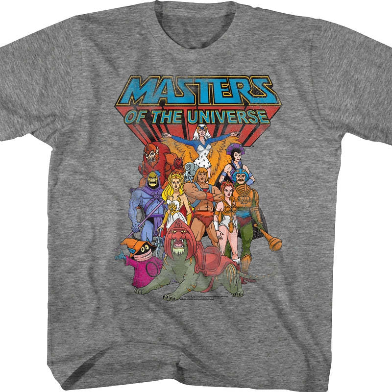 This youth shirt features the characters that made Masters of the Universe one of the greatest animated franchises of all time. The shirt shows Sorceress, Evil-Lyn, Man-At-Arms, Teela, He-Man, Battle Cat, She-Ra, Orko, Skeletor, and Beast Man.