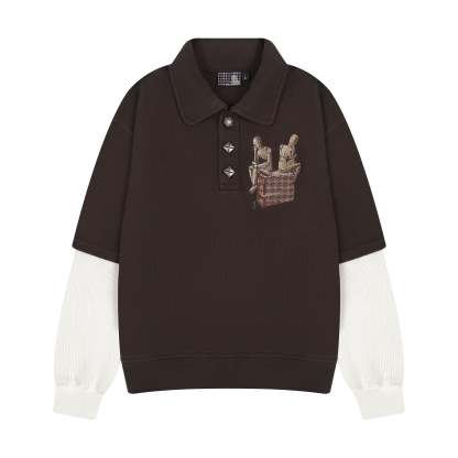 "gallery" layered Polo Sweatshirt dark brown