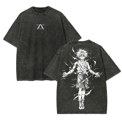 Killua Zoldyck Minimalistic Back pattern Vintage Tee