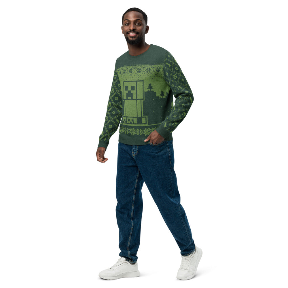 Bring festive fun to your winter wardrobe with the Minecraft Creeper Holiday Unisex Knit Sweater. Featuring the iconic green Creeper in a holiday-themed design, this cozy sweater is perfect for gamers who want to show off their?Minecraft pride during the holiday season. The bold pixelated graphics capture the spirit of the game while adding a playful twist to your holiday style.