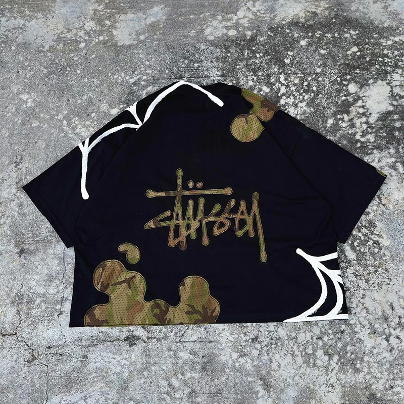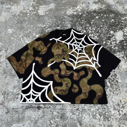 Personalized street style patchwork spider print T-shirt