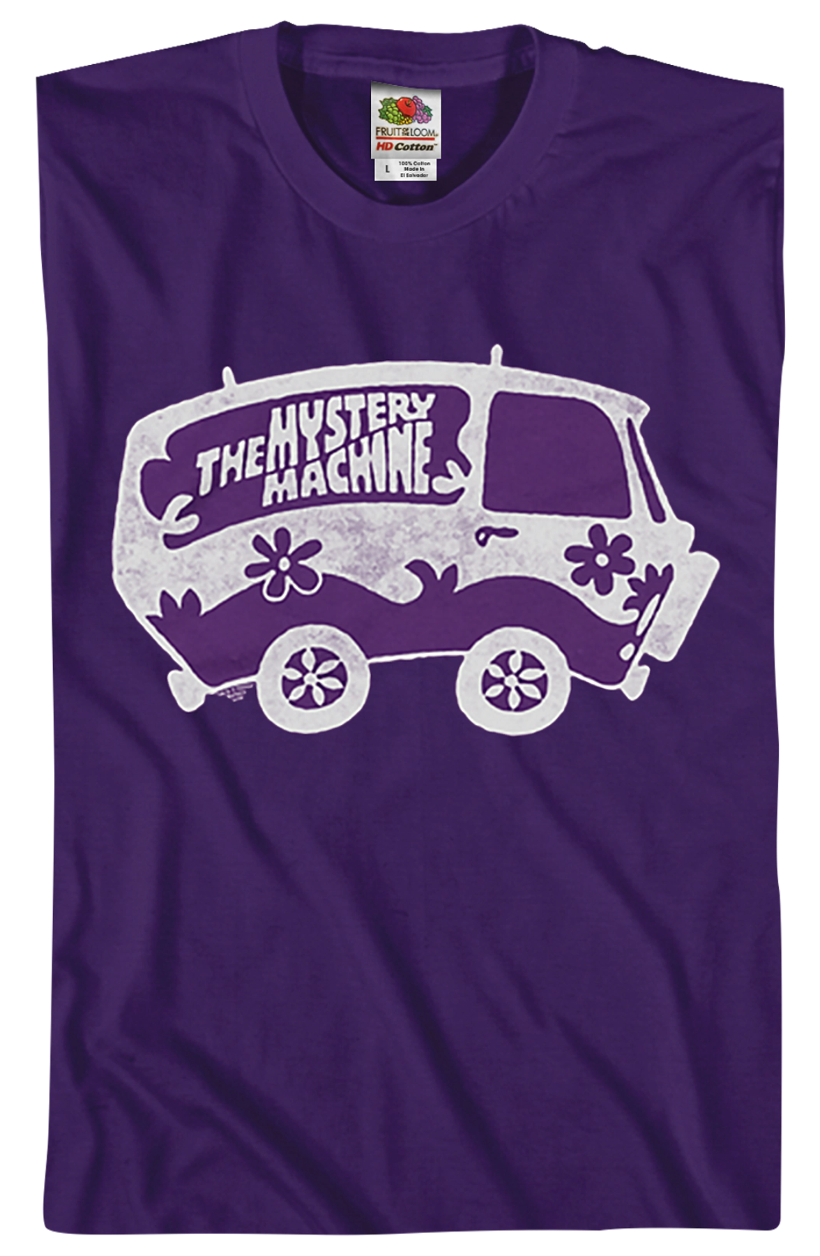 This Purple Mystery Machine Scooby-Doo T-Shirt shows the unmistakable outline of the meddling kids' van. Fred, Velma, Daphne, Shaggy, and Scooby-Doo solved one mystery after another in the Saturday morning cartoon. The popular show ran from 1976 to 1978 and inspired a number of spin-offs and movies.
