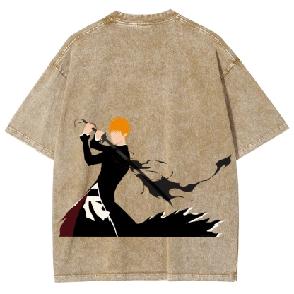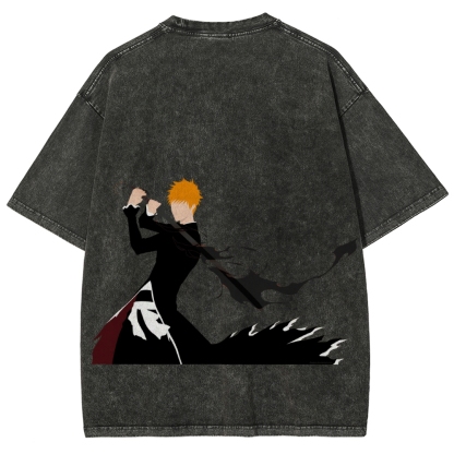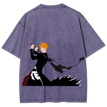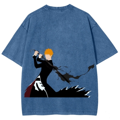 Kurozaki ichigo Bankai Steetwear Washed T-Shirt