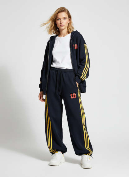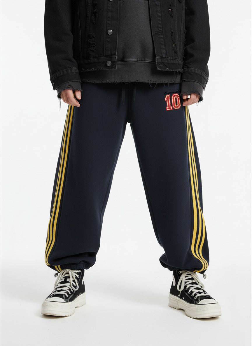 • Detail Features: Elastic waistband with drawstring, side stripes, number design on the leg